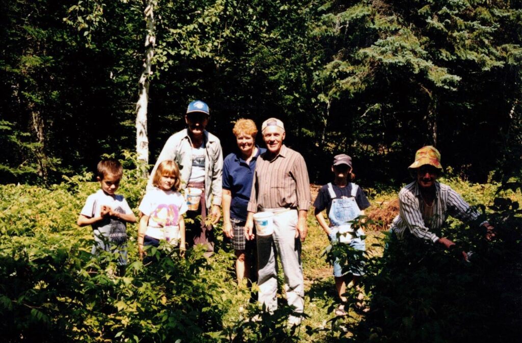 À un autre moment, mon père arrivait tout heureux avec une branche remplie de gros bleuets pour nous montrer notre prochaine sortie de cueillette ou alors, avec des baies d’amélanchier qu’il nommait petites poires; il expliquait qu’il en mangeait sur les chantiers de bûcheron où il travaillait dans sa jeunesse. Sa joie a été de nous faire goûter le thé du Labrador, ses yeux pétillaient de bonheur pour chaque découverte qu’il partageait avec nous. Il me disait : « si tu traverses la forêt seule, parle, chante et fais du bruit pour annoncer ta présence aux animaux sauvages. » Ses enseignements étaient simples et rassurants.